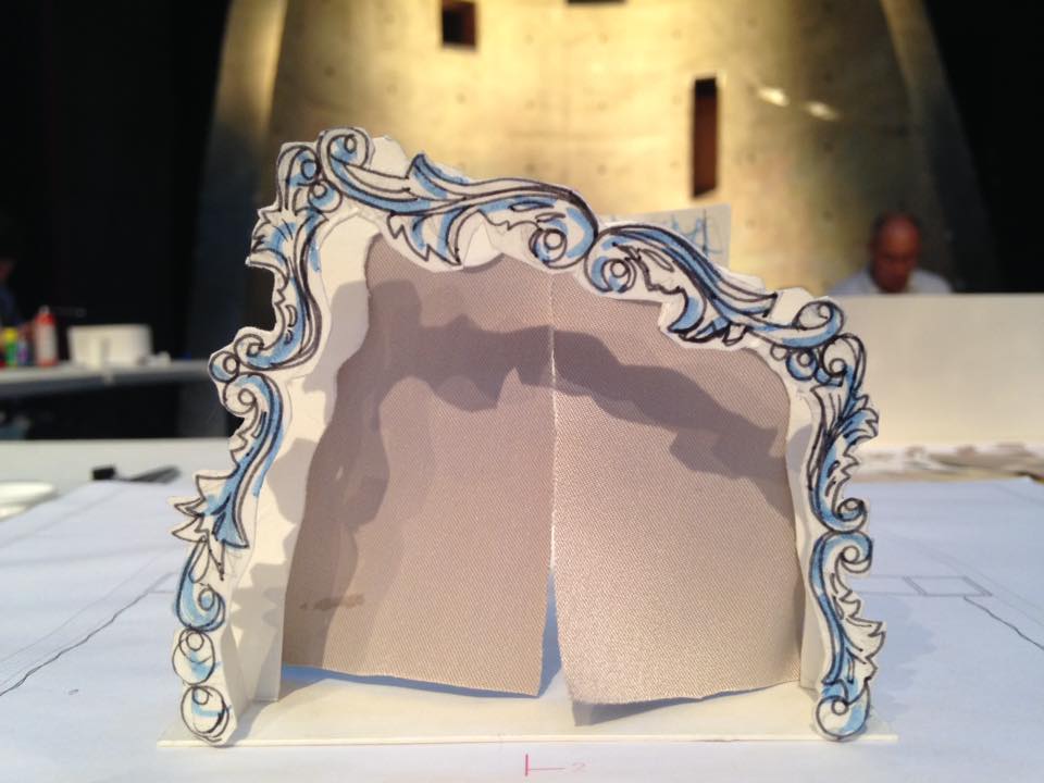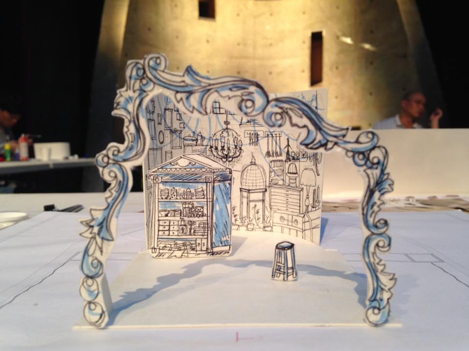 내가 만든 단막극 <페츄니아를 짓밟은 거인> 무대디자인 컨셉 모형. 도로시가 사는 잡화상을 납골당 컨셉으로 잡고 프레임 안에 먼지 쌓인 잡화들을 보이게 한다. 오태훈 강사님의 조언으로 화려하게 프레임을 구현. 공간감을 주기 위해 뒷쪽에는 그림으로 표현하고 앞에는 실제 찬장과 의자를 놨다.
