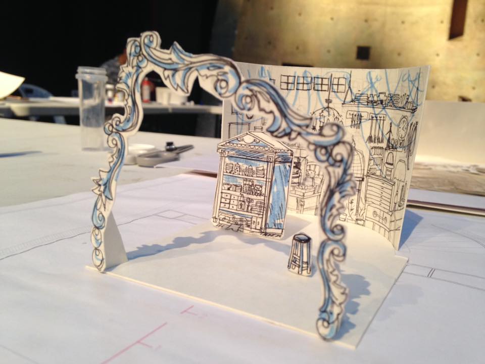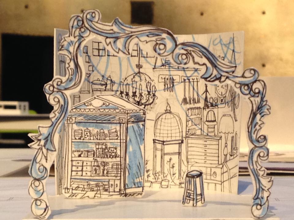 내가 만든 단막극 <페츄니아를 짓밟은 거인> 무대디자인 컨셉 모형. 도로시가 사는 잡화상을 납골당 컨셉으로 잡고 프레임 안에 먼지 쌓인 잡화들을 보이게 한다. 오태훈 강사님의 조언으로 화려하게 프레임을 구현. 공간감을 주기 위해 뒷쪽에는 그림으로 표현하고 앞에는 실제 찬장과 의자를 놨다.