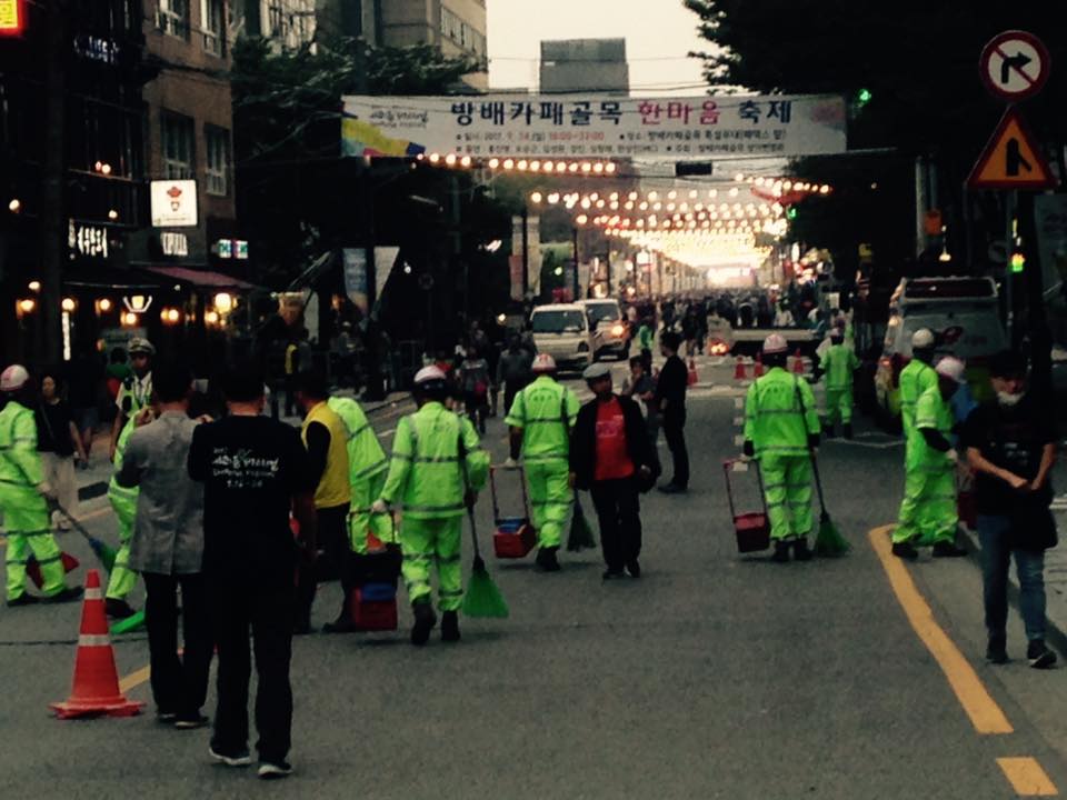 <2017 서리풀 골목 페스티벌> 마지막날 축제 모니터링. 서리풀은 서초구의 옛 지명. 구청의 맨투맨 홍보와 주민들의 서초부심이 높은 참여율로 이어짐. But 행사장이 대로에서 방배카페골목으로 바뀌면서 불만 토로 .