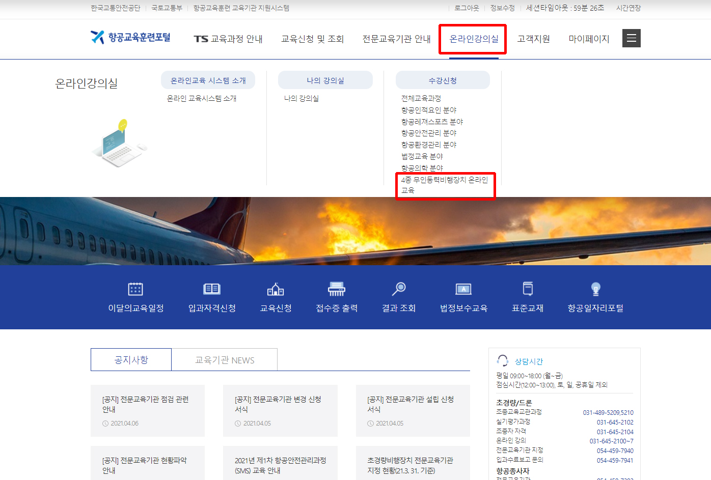 기타 드론 온라인 교육 수강신청 문의사항은 드론자격시험센터(031-645-2101)로 전화주시기 바랍니다.